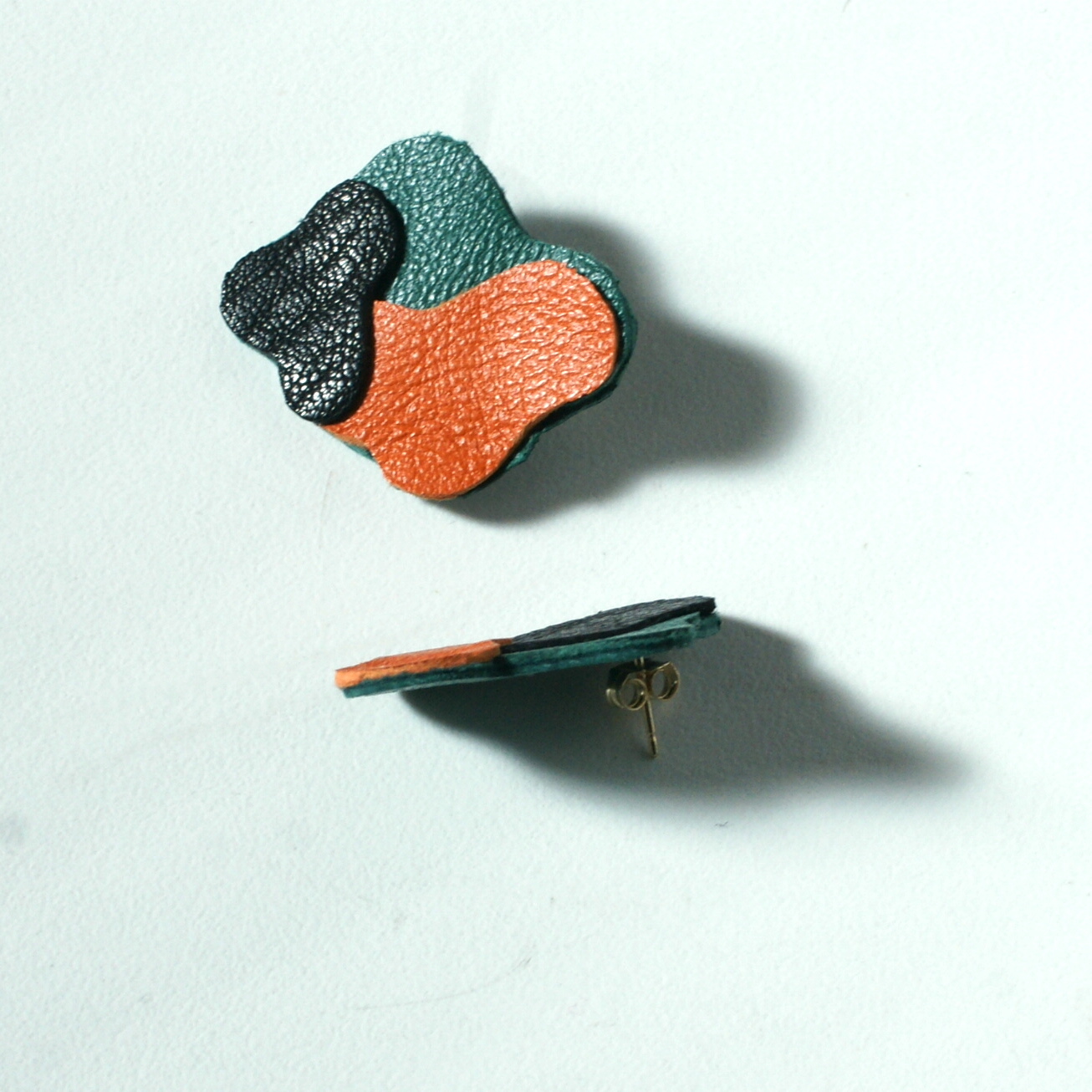 Each pair are individually cut, then worked together as you’d add paint to a canvas until the desired shape is formed. Each individual earring is completely unique – no one pair is same.