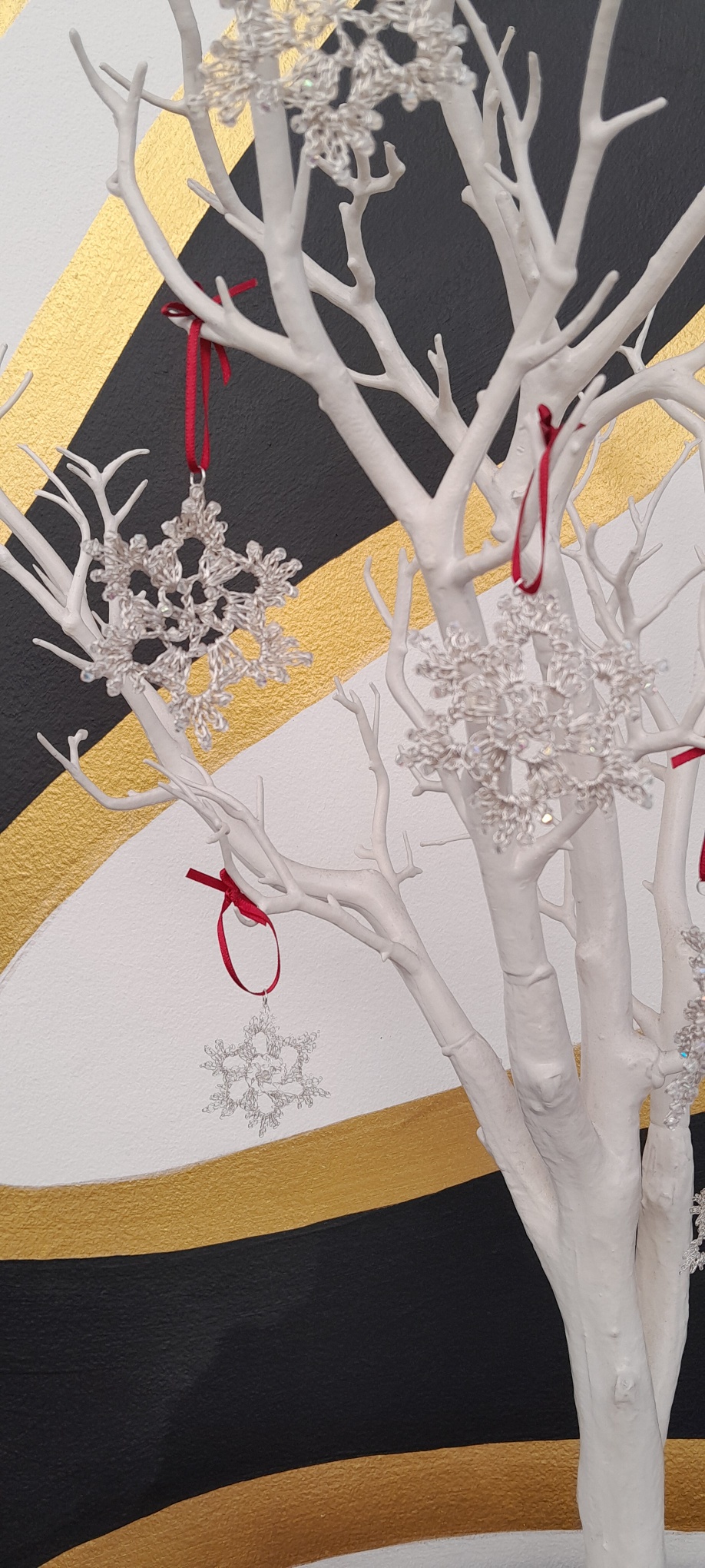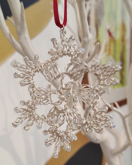 Beautiful Silver and crystal snow flakes decoration. Intricate and striking.