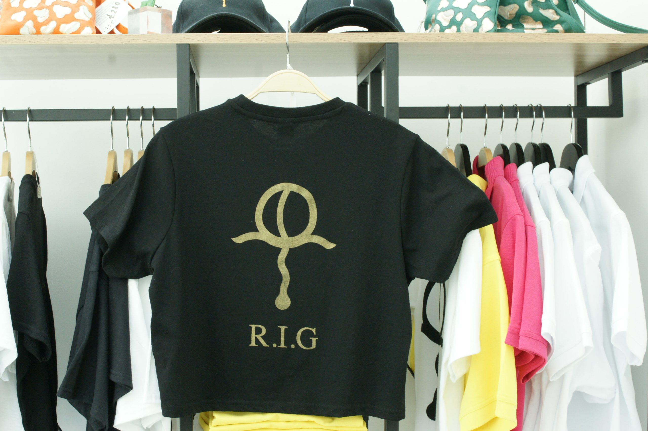 The Original ‘Gratitude Symbol’ designed by Amma Gyan, individually screen printed with biodegradable dye, onto a cropped cotton T-Shirt.